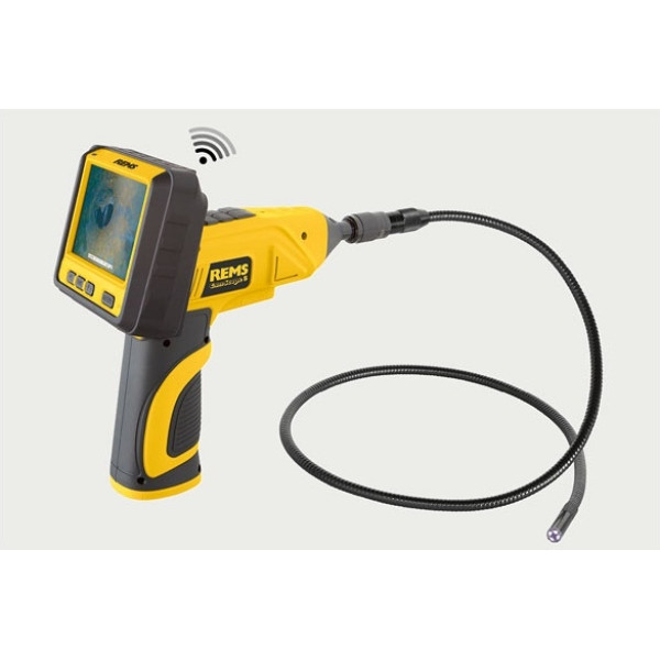 Mobilná, príručná kamera-endoskop s bezdrôtovou  technikou pre nízkonákladovú inšpekciu a analýzu poškodenia ťažko dostupných miest ako sú dutiny, šachty, potrubia a dokumentácia snímok a videozáznamov na karte MicroSD. REMS CamScope S s hlasovým záznamom. Pre akumulátorovú a sieťovú prevádzku. Li-Ion-technológie.