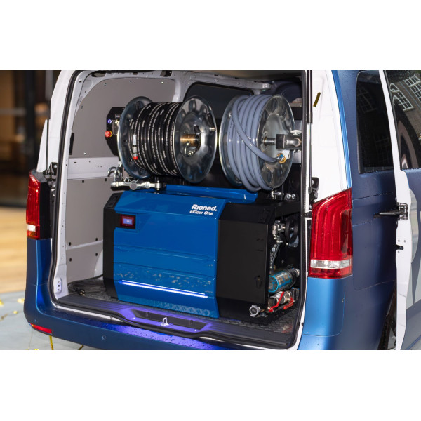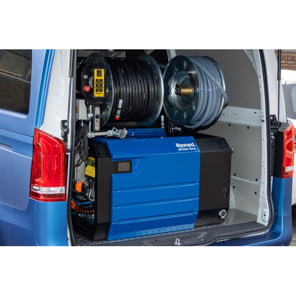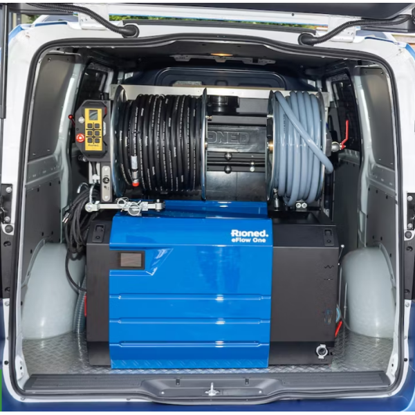 • Rioned eFlow One plne elektrická vstavaná vysokotlaková čistička potrubí do Ø 300mm